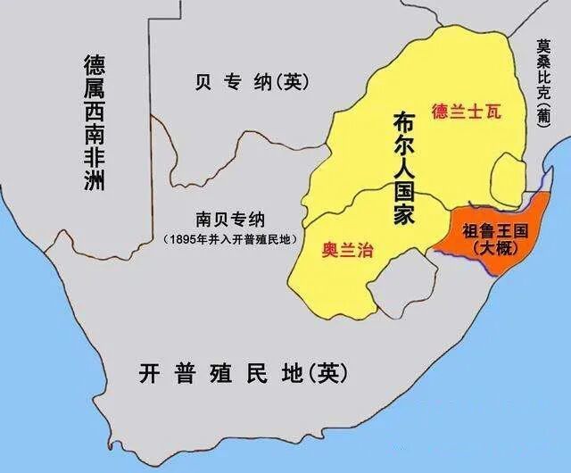 1836年,由于对英国统治的不满,布尔人开始成批离开好望角,在更北的内陆地区建立了一众零散的殖民区。
