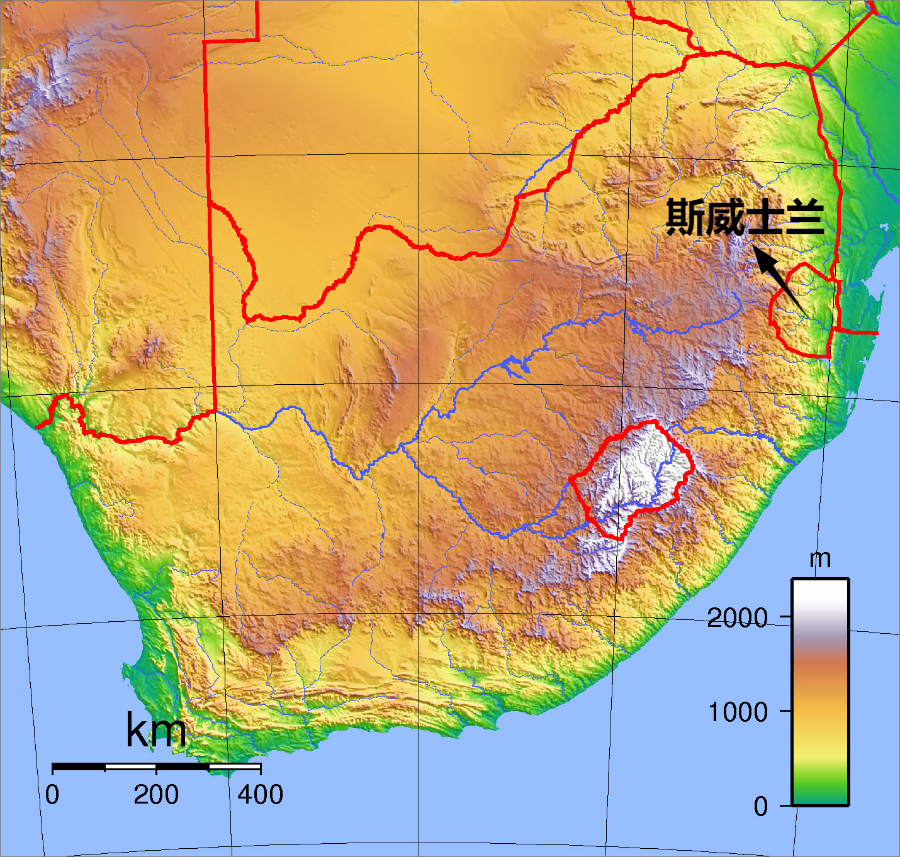 而向北移民扩张的布尔人遇到了包括斯威士兰在内的一系列土著王国后,很快和当地居民产生了冲突,但由于斯威士兰地形西高东低,背靠南非高原东南侧的德拉肯斯山脉。
